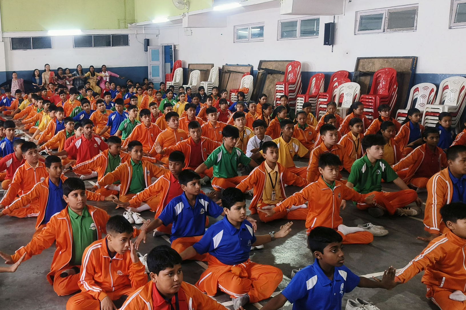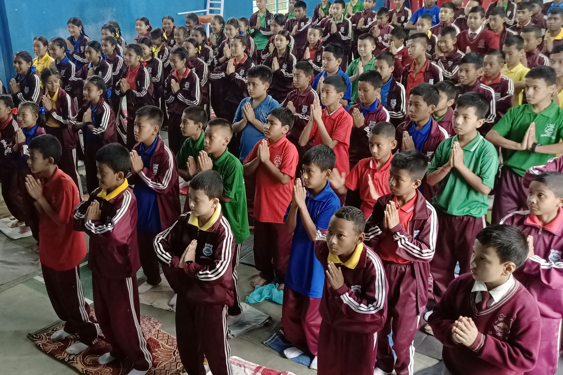 시킴 라왕라(Ravangla) 티베트 학교의 학생들이 파룬궁 5세트 공법을 배우고 있다.